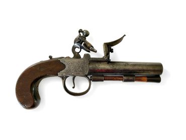 A RARE 48 BORE FLINTLOCK BOX-LOCK POCKET PISTOL CIRCA 1785-90 BY WOGDON, LONDON, DOCUMENTED IN O'SULLIVAN & BAILEY, PAGE 205, CAT.NO. PP9