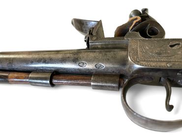 We stock a wide range of Flintlock Pistols including Flintlock Duelling Pistols, Flintlock Officers Pistols, Flintlock Travelling Pistols, Fintlock Pocket Pistols & Military Flintlock Pistols. Our main interest is in items by the top London makers including the Mantons, Wogdon, Mortimer, Durs and Joseph Egg.