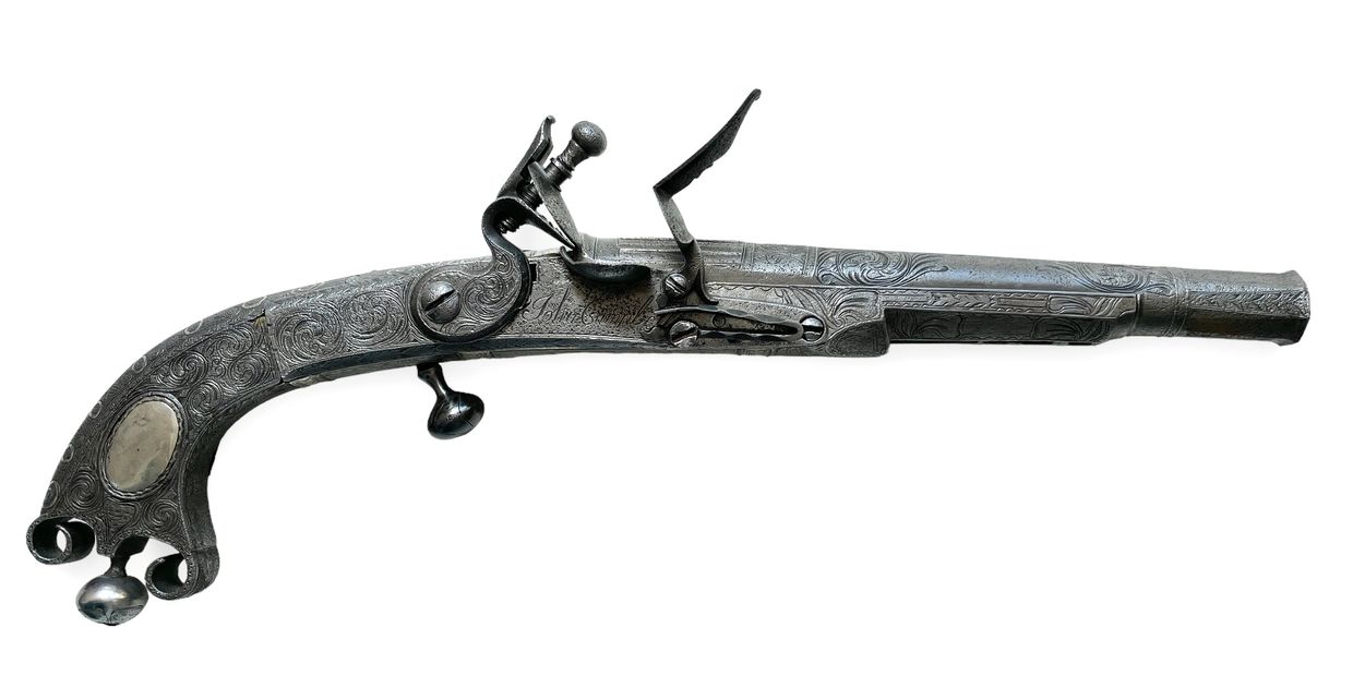 The maker of this pistol was John Campbell, the second of the Campbell generation of gunsmiths operating during the 18th century. He was one of the leading gunmakers in Scotland and died in 1807, aged 71.